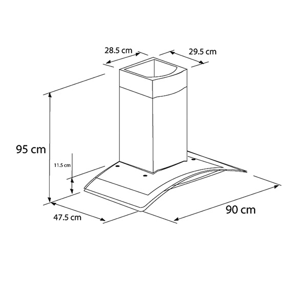 Campana de acero inoxidable y cristal, de pared, pruficadora y extractora de 90 cm de ancho, con iluminación de 2 lámparas LED de 2 W c/u.