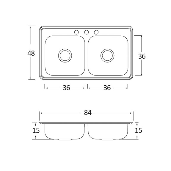 «Tina 1 de 36 X 36 cm, Tina 2 36 X 36 cm, medidas generales 84 X 48 cm.